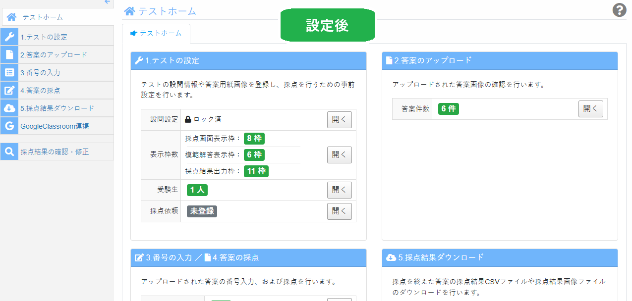 「1.テストの設定」をクリックして、上から順に進めましょう。